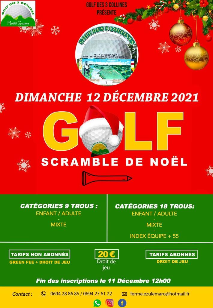 GOLF SCAMBLE DE NOEL Déc 10, 2021 LE GOLF DES 3 COLLINES, Présente LE GOLF SCAMBLE DE NOEL LE Dimanche 12 Décembre 2021 INSCRIPTION AU : 0694 28 86 85 – 0694 27 61 22 ferme.ezulemaro@hotmail.fr