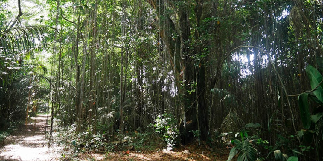 L’Entrée du sentier est à la maison de la nature de Sinnamary qui se situe au P.K. 125 sur la R.N.1